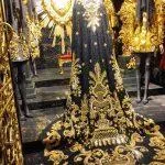 Un tributo alla Madonnina del Duomo invece è offerto dall’opera che conclude il percorso espositivo. Un abito dorato in tessuto e ricami preziosi. Color oro come la Madonnina del Duomo. Della Milano di Dolce e Gabbana che mettendo una corona mariana sul capo, reclinando lievemente il viso e mettendo le mani in grembo a un manichino inanimato – ma così sontuosamente rivestito – hanno conferito la giusta solennità a un’incantevole e vera opera d’arte.