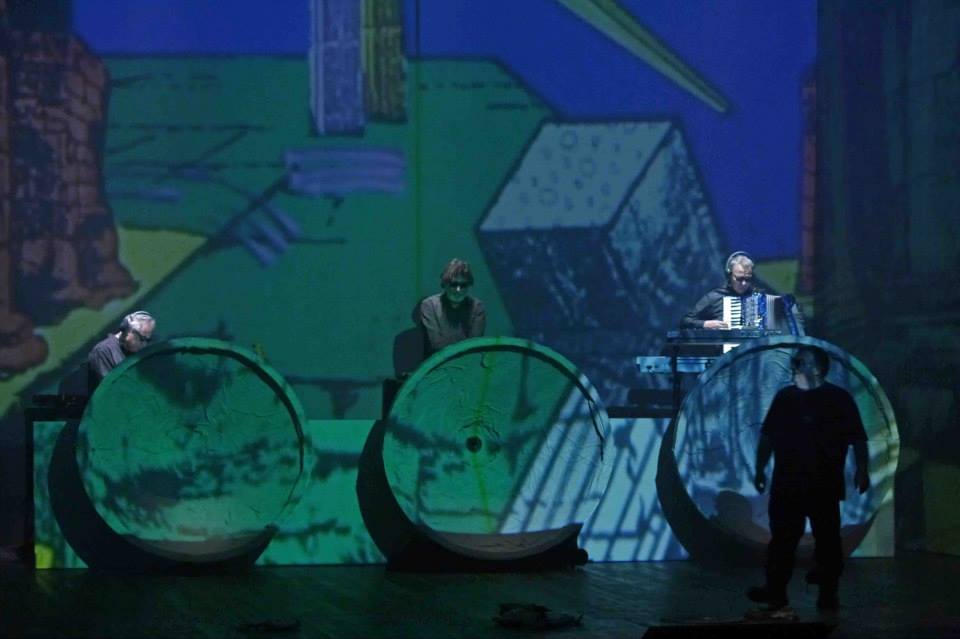 Noteverticali.it_Eneide_Krypton_Morelli_9Il rock anni ’80 dei tre ragazzi di via de’ Bardi scorre intenso e tumultuoso, a caratterizzare le scene di battaglia, nelle quali l’impeto eroico, che risente ovviamente della ridondanza tipica del poema epico, disegna parabole di grandezza, offrendo allo spettatore l’immagine degli uomini burattini in mano al gioco beffardo degli dei, che assistono alla rappresentazione di creature private dal dono dell’immortalità come figlia di un copione già scritto. Sembra di assistere a un videogame, ed è questa la bellezza di uno spettacolo che non ha tempo, come l’arte, appunto. Delicati e struggenti gli interventi in voce di Ginevra Di Marco, che rappresentando Didone e il suo dramma ne “L’incontro d’amore” ci offre quadri di pura poesia, suggellati dall’introduzione della fisarmomica e dai giochi di luce proiettati sullo schermo che irradiano fantasie cromatiche ricche di notevole intensità. Inevitabile, a questi lidi, il confronto con altre opere teatrali in stile post-moderno: pensiamo al Telesio di Franco Battiato, visto nel 2011, e a quanto l’Eneide di Krypton avrebbe potuto fare ancora di più se avesse ottenuto gli stessi finanziamenti disposti per l’opera del maestro catanese. Considerazioni personali che durano il tempo di un attimo, ma che reputiamo più che doverose trascrivere.