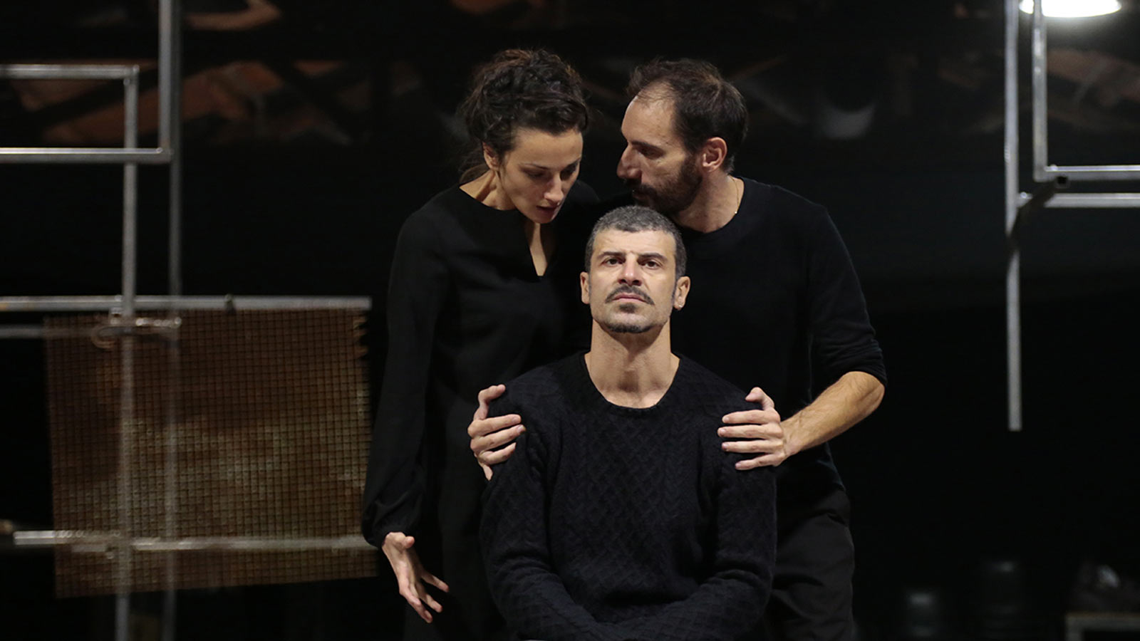 La luce (Massimo Munalli) intermittente, proiettata, avvolgente gioca un ruolo fondamentale nell’economia della messa in scena, come la scenografia stessa, che prende forma grazie agli attori che la modellano coreograficamente. Interessante l’espediente di accompagnare lo spettatore nel vasto mondo di personaggi e situazioni con scritte e immagini a china (Francesca Mariani).