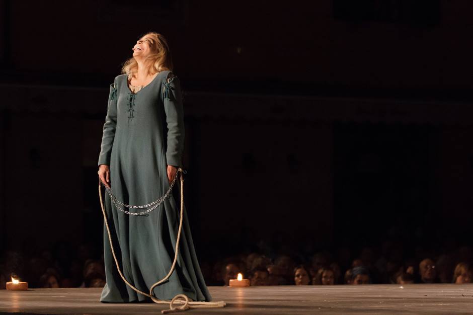 Una drammaturgia forte e intensa, grazie al personaggio principale, ma soprattutto a quelli che hanno incarnato testimoni e accusatori: su tutti, Massimiliano Vado, l’accusatore per eccellenza, quel Lorenzo di Surdis ‘Capitano e Conservatore della pace della città di Todi e del suo distretto per la Santa Chiesa Romana e per il Santissimo Padre in Cristo e signor nostro Signore Martino per divina provvidenza papa V’ che, in nome di Dio, il 20 marzo 1428 fece morire un’innocente.